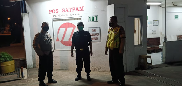 Pada kesempatan tersebut, Unit Sabhara dipimpin piket Pawas Ipda Agus Yunus melaksanakan patroli ke Kawasan Industri Perusahaan PT. Moruchi dan menyampaikan himbauan kamtibmas kepada satuan pengamanan (satpam) di PT. Moruchi agar selalu waspada terhadap situasi di masa Pandemi Covid-19. “Lakukan patroli keliling di lingkungan perusahaan secara rutin, cek lokasi parkir serta tetap disiplin Protokol Kesehatan dengan menerapkan 5 M (Memakai masker, Menjaga jarak, rajin Mencuci tangan, Menghindari Kerumunan dan Membatasi mobilitas) sebagai langkah pencegah penyebaran Covid-19 di lingkungan perusahaan”. Tutur Ipda Agus Yunus.