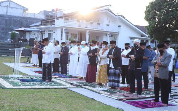Pelaksanaan shalat berlangsung khidmat dan lancar. Setelah usai solat, para jemaah dipersilahkan untuk menyantap makanan namun tidak digelar open house. Pada Idul Adha, itu juga terlihat di pelataran kediaman Wali Kota terdapat sejumlah hewan kurban yang disembelih dan daging kurban dibagikan kepada masyarakat. (H.Asep R/FORMASNEWS.COM)