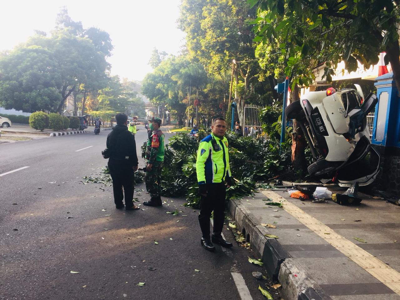 Mobil Terbang Usai Tabrak Pohon di Jalan Diponegoro