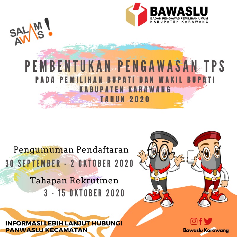 Dikatakan Ketua Bawaslu Karawang, Kursin Kurniawan, masa pendaftaran Pengawas TPS dibuka tanggal 30 September-2 Oktober 2020. Dibutuhkan satu orang yang bertugas di tiap-tiap TPS.
