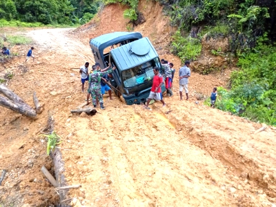 “Kondisi jalan yang belum diaspal ditambah dengan kondisi cuaca yang tidak menentu. Membuat perjalanan Dorlog ini penuh tantangan, tidak jarang kondisi jalan yang berlumpur menghambat laju kendaraan dan membuat waktu tempuh bertambah dua kali lipat dari yang seharusnya,” kata Dadang.