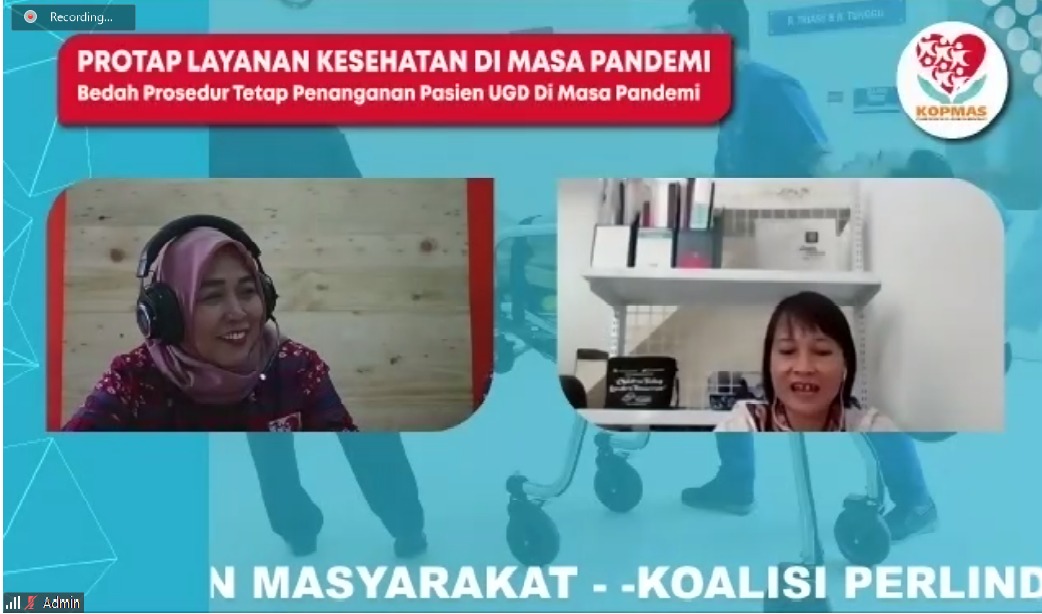 Ketua bidang advokasi KOPMAS yang juga aktivis BPJS, Yuli Supriati dalam kesempatan yang sama mengajak masyarakat untuk berdamai dengan pandemi. “Untuk orang yang sedang sakit, maka harus berdamai dengan pandemi. Bagaimana agar masyarakat tidak takut berobat ke rumah sakit,”Ujar Yuli.