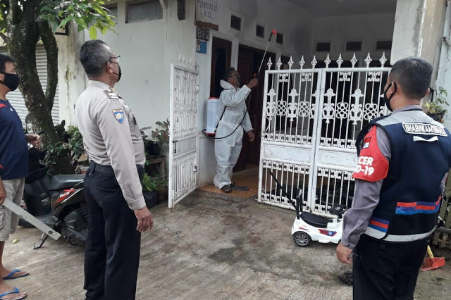 Penyemprotan tersebut dilakukan guna mengantisipasi serta mencegah penyebaran Covid-19 di lingkungan warga.