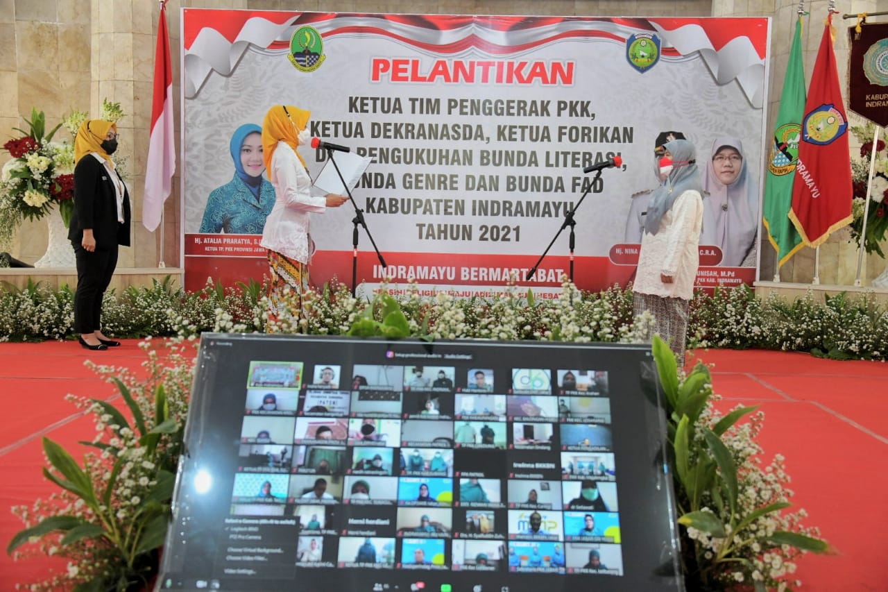 Ketua Tim Penggerak Pemberdayaan Kesejahteraan Keluarga (TP-PKK) Atalia Praratya Ridwan Kamil melantik Runisah sebagai Ketua TP-PKK Kabupaten Indramayu masa bakti 2021-2026 di Pendopo Bupati Indramayu, Rabu (1/9/2021). (Foto: Pipin Sofian Sauri/Biro Adpim Jabar)