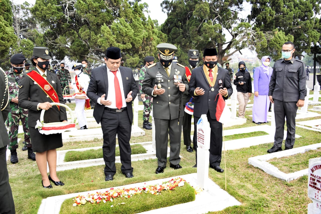 BANDUNG,– Wakil Gubernur (Wagub) Jawa Barat (Jabar) Uu Ruzhanul Ulum menghadiri Ziarah Nasional dalam rangka Peringatan HUT ke-75 TNI Tahun 2020 di Taman Makam Pahlawan Cikutra, Kota Bandung, Jumat (2/10/2020).
