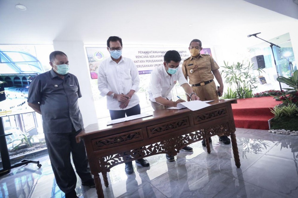 Oleh karenanya, PDAM Tirtawening menandatangani kerja sama dengan Perum Jasa Tirta II (PJT 2) untuk penyediaan air curah, di Kantor PDAM Tirtawening, Selasa 2 Desember 2020.