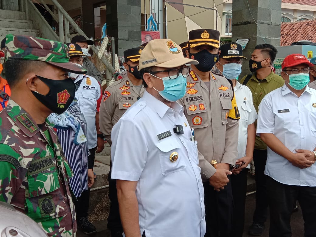 CIREBON – Kapolresta Cirebon, Kombes Pol M. Syahduddi, S.I.K, M.Si, dan Bupati Cirebon, Drs. H. Imron, M.Ag, membagikan 2000 masker kepada masyarakat yang beraktivitas di Pasar Sumber dan sekitarnya, Rabu (3/2/2021). Masker juga dibagikan kepada warga di sekitar pasar tersebut.