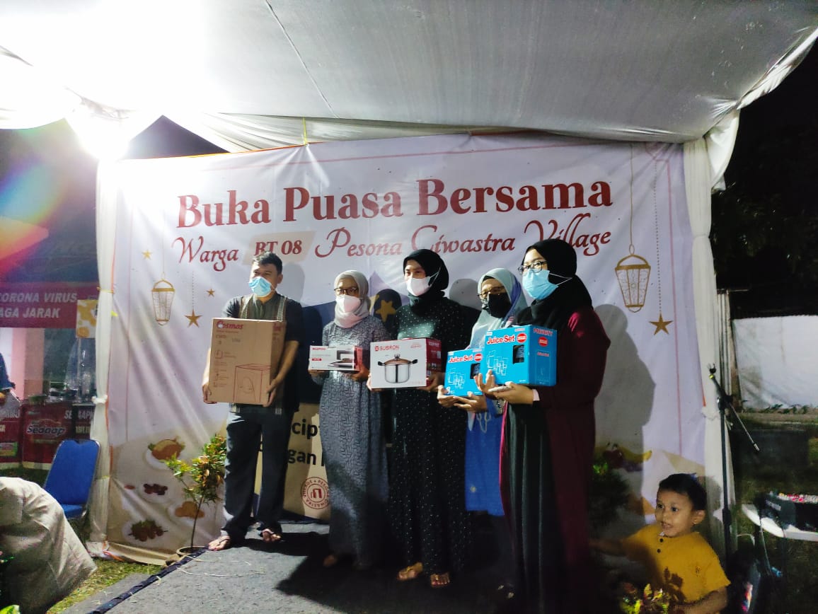 Buka puasa bersama ini ditutup dengan pembagian door prize. Terlihat warga yang mendapatkan door prize naik ke panggung dan berswafoto untuk diabadikan oleh para pengurus DKM Masjid Al-Hikmah.