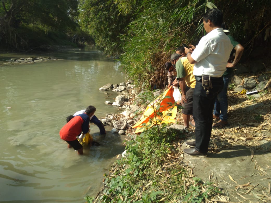 “Menurut saksi yang bernama Farhan (7) Tahun, dan Ambari (54) tahun, Awal mula kejadian saksi Farhan akan bermain disungai melihat ada sesosok mayat laki-laki mengenakan kaos warna kuning, posisi tertelungkup di tengah sungai. Kemudian saksi melaporkan kepada warga sekitar tentang penemuan mayat tersebut,” jelas Iptu M. Soleh,S.H.