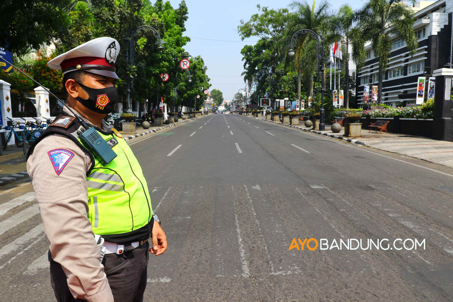 BANDUNG — Penutupan di sejumlah ruas jalan di Kota Bandung masih berlaku untuk mengurangi kerumunan masyarakat.