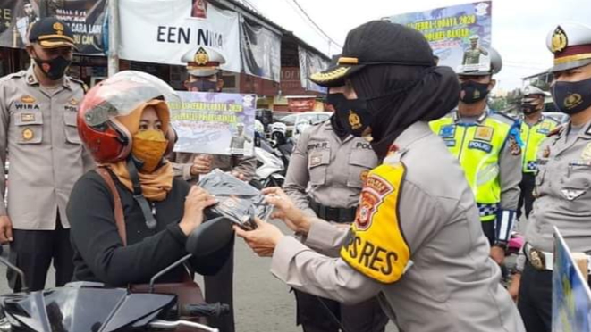 BANJAR – Kepala Kepolisian Resos Banjar AKBP Melda Yanny, bersama Personil Polres Banjar melaksanakan operasi Zebra Lodaya 2020 dengan cara yang berbeda di sekitaran Pasar Kota Banjar.