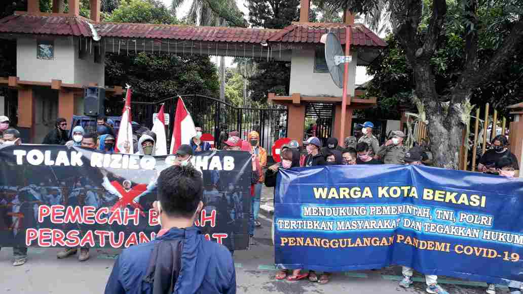 KOTA BEKASI, – Gelombang Penolakan terhadap Imam Besar Habib Rizieq Shihab terus terjadi, kali ini terjadi di Kota Bekasi Jawa Barat.