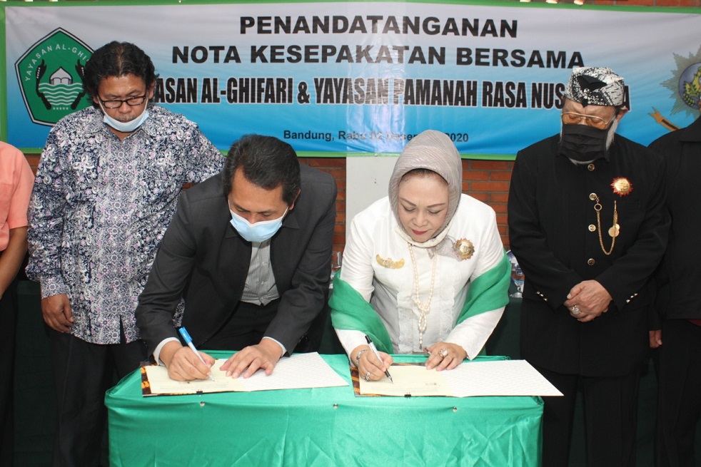 Untuk meningkatkan pengembangan kelembagaan, Yayasan Al-Ghifari menjalin kerjasama dengan Yayasan Pamanah Rasa Nusantara (Yaparanus). Penandatanganan Nota Kesepakatan Bersama atau Memorandum of Understanding (MoU), digelar di Aula Yayasan Al-Ghifari, Jl. Cisaranten Kulon No. 140, Bandung, Rabu (2/12/2020). Kedua belah pihak sepakat untuk mengembangkan dan meningkatkan kualitas pendidikan termasuk pengembangan seni dan budaya Sunda serta kearifan lokal.
