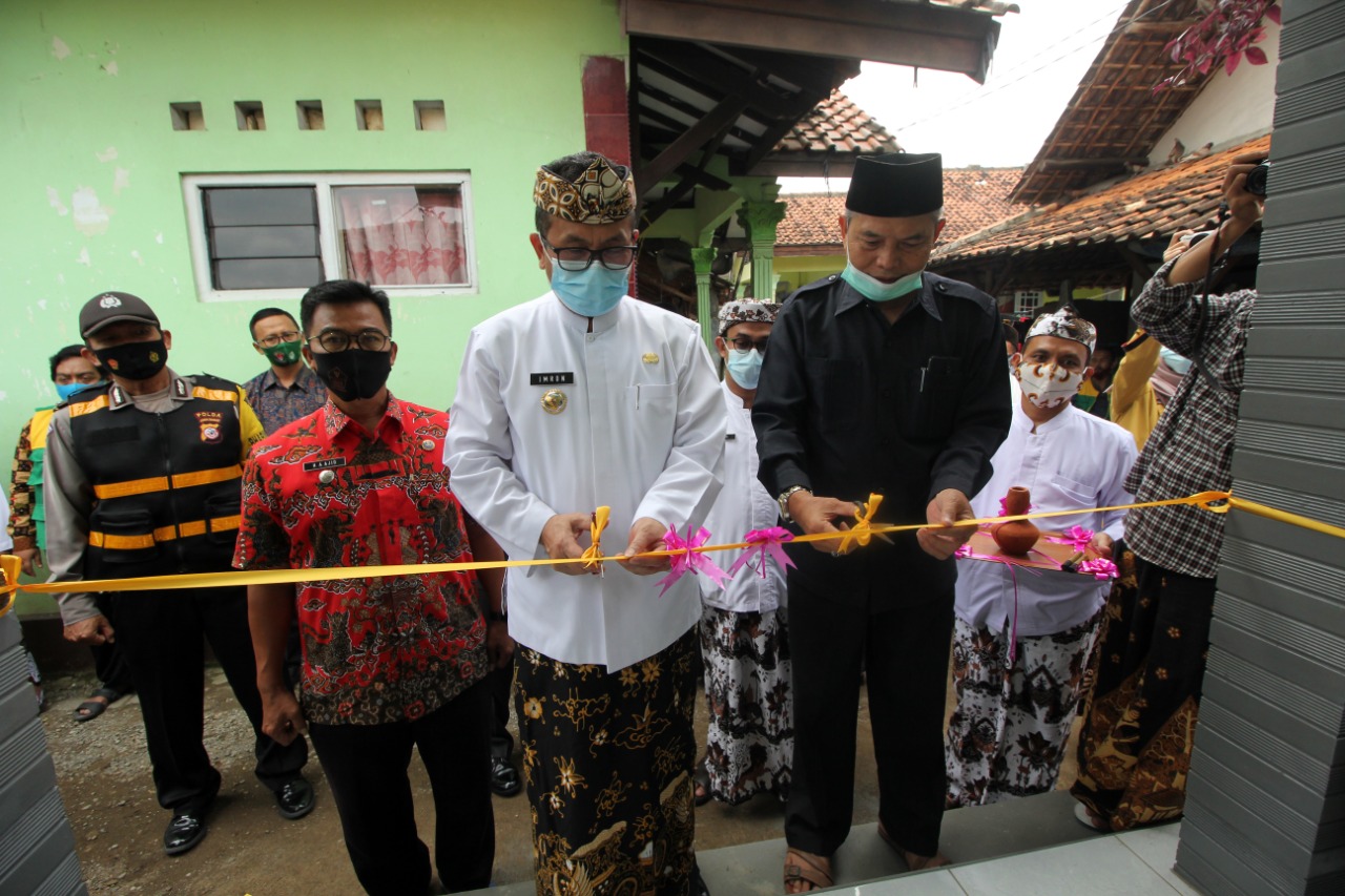 CIREBON – Bupati Cirebon, Drs. H. Imron, M.Ag bersama Baznas Kabupaten Cirebon meninjau sekaligus meresmikan rumah tidak layak huni di Desa Lungbenda Kecamatan Palimanan, Kamis (4/3/2021).