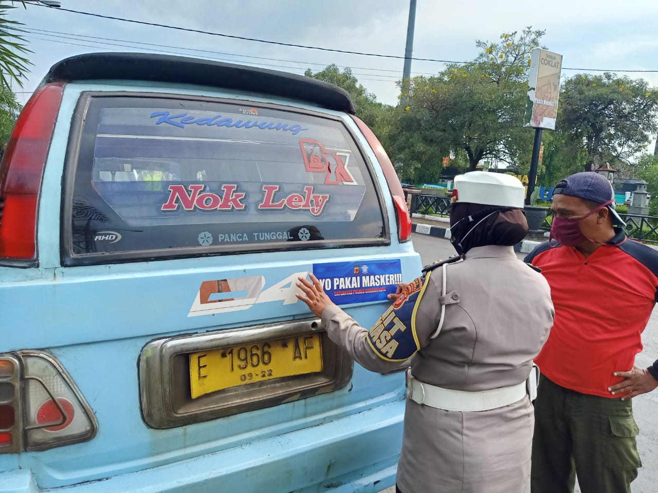 “Kami dari Sat Lantas Polres Cirebon Kota mencoba untuk memberikan himbauan secara tidak langsung kepada masyarakat dengan menempelkan stiker “Ayo Pakai Masker” dan Sosialisasi 3 W. Hal ini dalam rangka Ops Keselamatan Lodaya 2021 Sat Lantas ada kendaraan umum sebanyak 10 Stiker dipasang.