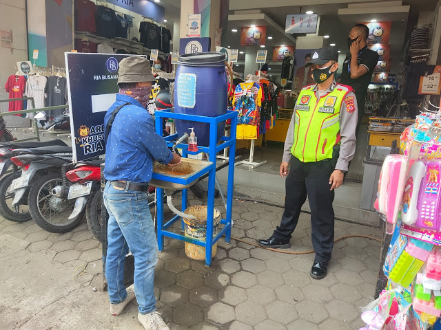 RANCAEKEK – Dalam menghadapi New Normal Life dengan menerapkan Protokol Kesehatan Anggota Sabhara Polsek Rancaekek Polresta Bandung melakukan himbauan kepada pengunjung Toko Ria Busana, 04/06/2021.