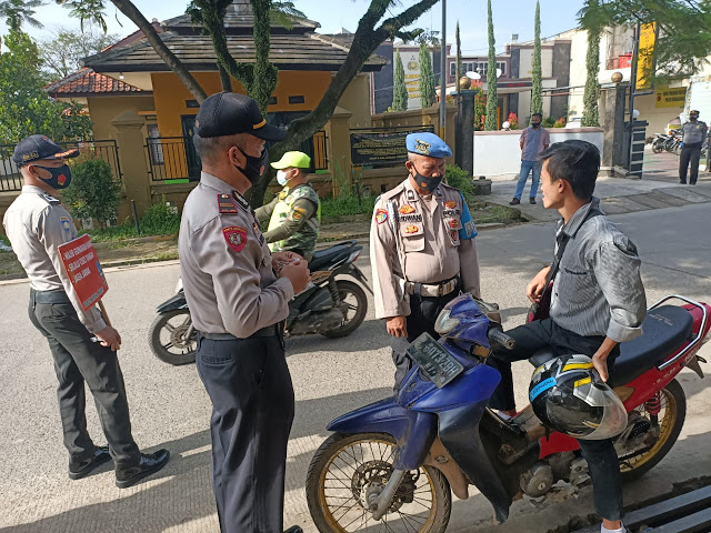 Bertempat di Jalan Cikoneng Bojongsoang bersama 3 pilar yang terdiri dari TNI-POLRI & POLPP menggelar operasi yustisi melaksanakan penegakan hukum disiplin protokol kesehatan bagi warga dan pengguna jalan serta bagikan masker di tengah adaptasi kebiasaan baru (AKB)