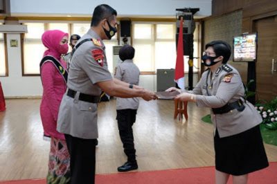 BANDUNG | Kapolda Jabar Irjen. Pol. Drs.Rudy Sufahriadi memberikan penghargaan ESTHI BAKTI WARAPSARI Pada Peringatan HUT Polwan ke 72, Selasa (1/9/2020), kepada 2 orang Polwan di lingkungan Polda Jabar yang dianggap berprestasi luar biasa dalam menjalankan tugas.