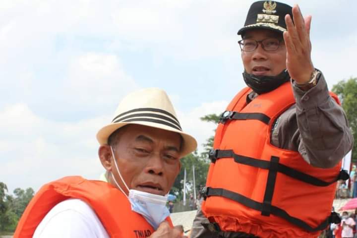 Kang Jimat bersama Gubernur Jawa Barat, setelah melakukan susur sungai menyapa warga masyarakat yang sudah menunggu di Bendungan Barugbug, dalam kesempatan dialog tersebut, warga masyarakat menyampaikan keluhan keluhan yang ditemui karena tercemarnya Sungai Cilamaya.(Nandang/onediginews)