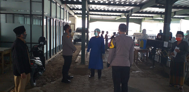 PACET – Kapolsek Pacet AKP Dana Suhenda beserta anggota melaksanakan pengamanan swab tes yang digelar di Pondok Pesantren (Ponpes) Baitul Arqom, Ds Maruyung Kec Pacet Kab Bandung.