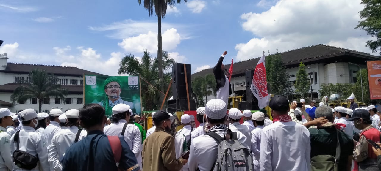 KOTA BANDUNG,- 0Ribuan umat Islam dari berbagai ormas di Jawa Barat melakukan aksi rapat rapat Akbar di Depan Gedung Sate Bandung, Rabu, (4/11) dalam rangka menyambut kepulangan imam besar FPI Habib Rizieq Shihab.