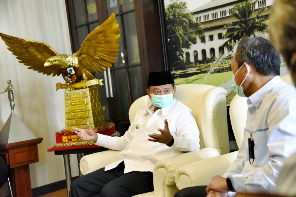 BANDUNG – Wakil Gubernur (Wagub) Jawa Barat (Jabar) Uu Ruzhanul Ulum menerima penghargaan sebagai stakeholder (pemangku kepentingan) pendukung keandalan jaringan listrik PT PLN (Persero) yang diserahkan langsung oleh General Manager PLN Unit Induk Transmisi Jawa Bagian Tengah, Sumaryadi, di Gedung Sate, Kota Bandung, Selasa (3/11/20).