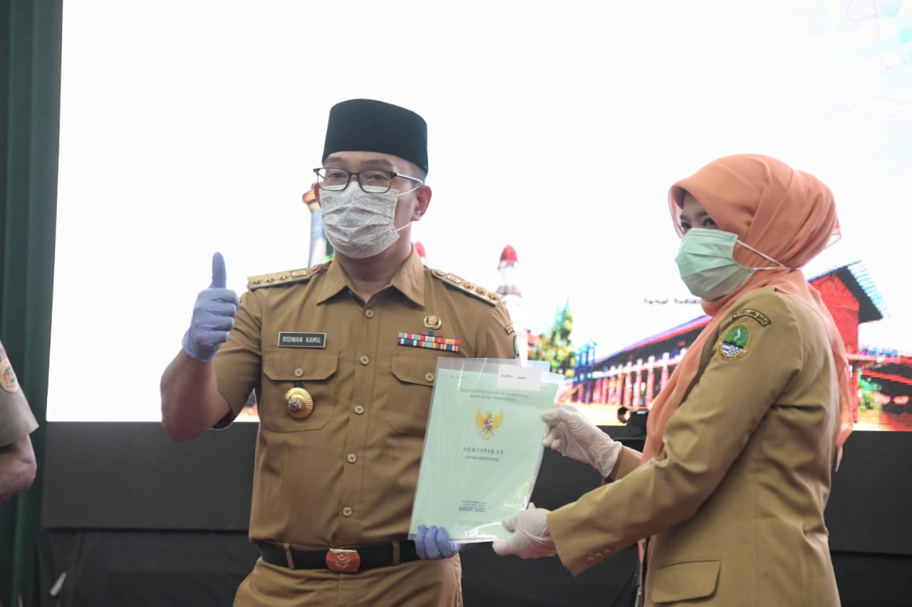 Seluruh sertifikat tanah bagi Pemda Provinsi Jabar ini secara simbolis diterima oleh Kepala Badan Pengelolaan Keuangan dan Aset Daerah (BPKAD) Jabar, Nanin Hayani Adam.