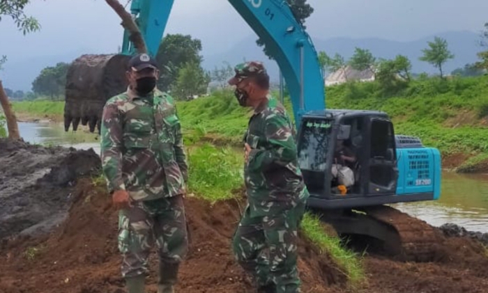 Di Posko ini, Dansektor 21 Citarum Harum mengecek pengerukan sedimen di sungai Cipamokolan di Kp. Ciputat Desa Tegalluar Kec. Bojongsoang.