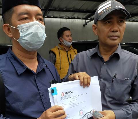 BANDUNG, — Dadang Rusdiana, warga Kabupaten Bandung melaporkan Gubernur Jabar Ridwan Kamil dan Wakil Gubernur Uu Rujalul Ulum ke Badan Pengawas Pemilu (Bawaslu) Jabar, Jumat (5/3/2021).