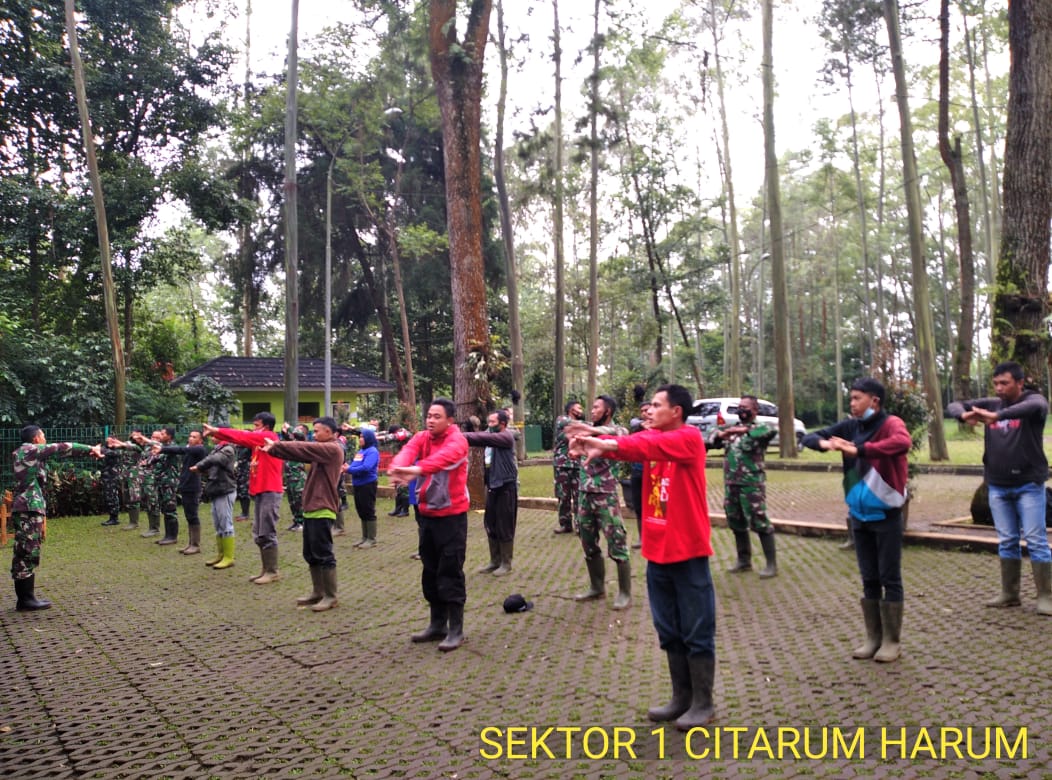 Kab. Bandung,- Untuk menjaga kebugaran dan meningkatkan imunitas tubuh, Sektor 1 Satgas Citarum Harum mengadakan olah raga senam pagi bersama bertempat di halaman depan Bale Sawala Desa Tarumajaya Kecamatan Kertasari Kab. Bandung, Senin (5/4/2021).