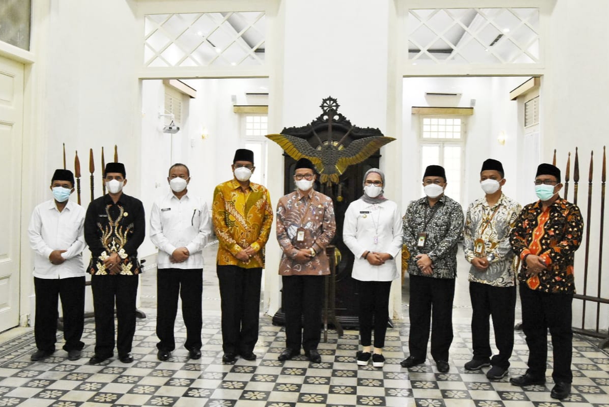 Indramayu – Bupati Indramayu, Nina Agustina, menerima kunjungan silaturahmi Kepala Kanwil Kemenag, Propinsi Jawa Barat, Adib, didampingi Kepala Bidang PHU, Ahmad Handiman Romdony dan Kepala Kankemenag Kabupaten Indramayu, Hanif Hanafi beserta jajaran pejabat Kemenag Jabar di Ruang Pendopo Indramayu, Rabu, (4/8/2021).