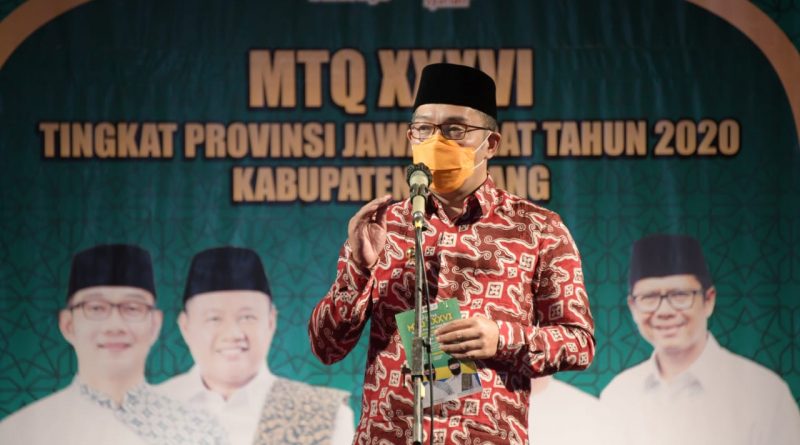 SUBANG – Gubernur Jawa Barat (Jabar) Ridwan Kamil membuka pelaksanaan Musabaqah Tilawatil Qur’an (MTQ) ke XXXVI tingkat Provinsi Jabar Tahun 2020 di Kantor Setda Kabupaten Subang, Jumat (4/9/20). Pelaksanaan MTQ kali ini mengangkat tema ‘Mewujudkan Generasi Qurani Menuju Jabar Juara Lahir Bathin dengan Inovasi dan Kolaborasi’.