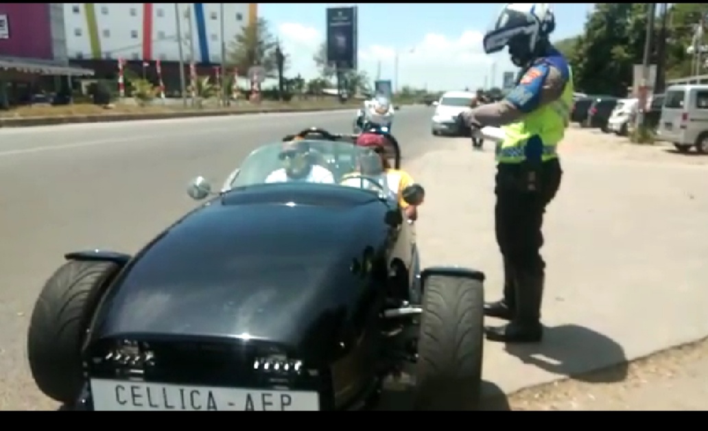 “Alasan di tilangnya karena Tanda Nomor Kendaraan Bermotor (TNKB) atau plat nomornya itu tidak sesuai ya. Kemudian, kendaraan itu kan jenisnya kendaraan bermotor, nah penggunanya itu tidak menggunakan Helm,” terangnya.