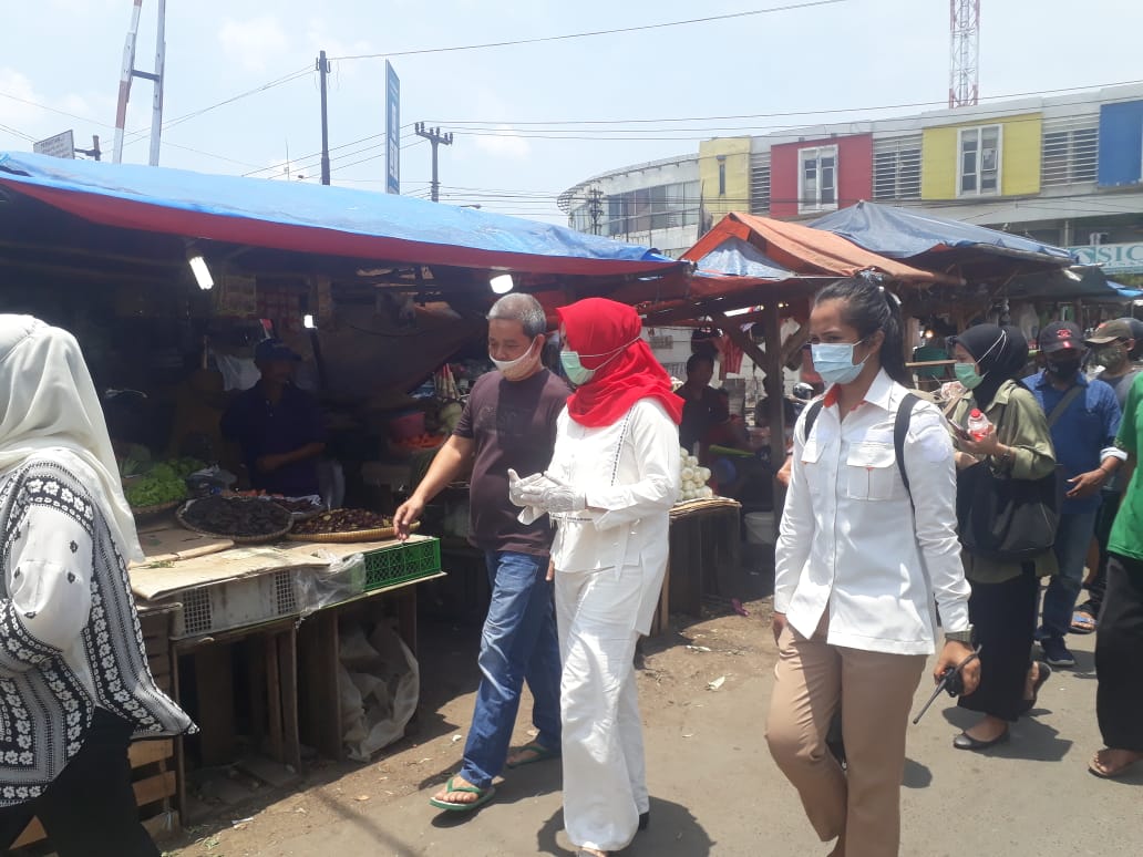 Dalam blusukannya dr. Yesi memberikan semangat kepada para pedagang di pasar Cikampek yang berjuang di saat pandemi covid-19.