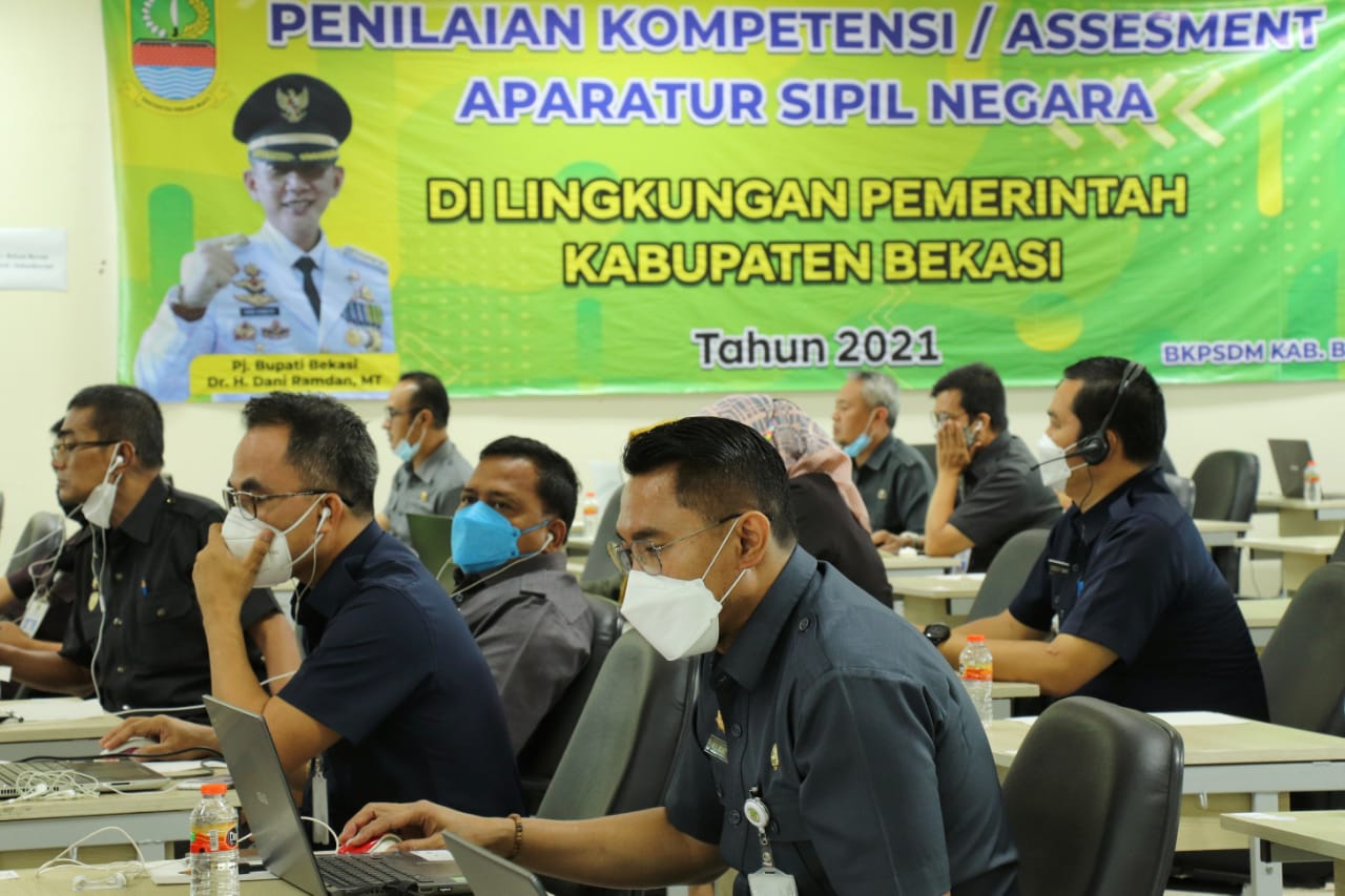 Kabupaten Bekasi – Sebanyak 2.327 Aparatur Sipil Negara (ASN) mengikuti uji layak kompetensi atau asessment ASN di Lingkungan Pemerintah Kabuptaen Bekasi pada Selasa (05/10/2021). Kegiatan ini digelar selama tiga hari mulai dari Tanggal 5-7 oktober 2021 di Gedung Diskominfosantik, Kabupaten Bekasi.
