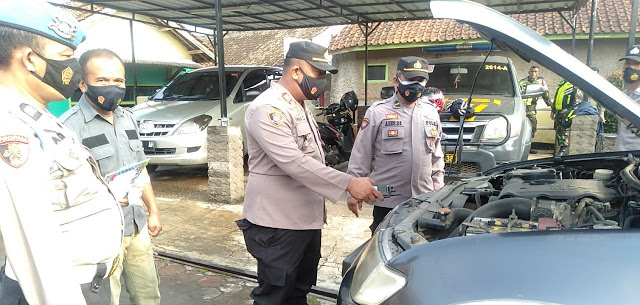 Pada kesempatan kali ini, Kapolsek Cikancung Akp Iwan Cahyadi. S.i.kom,MM melaksanakan pengecekan fisik terhadap semua kendaraan yang akan digunakan dalam patroli yakni Police Back Bone Strada berupa pengecekan fisik kendaraan, kondisi ban kendaraan, accu serta oli kendaraan, pengecekan lampu rotator, sirine dengan cara menghidupkannya. Selain itu, juga di cek kondisi air radiator setiap kendaraan tersebut.