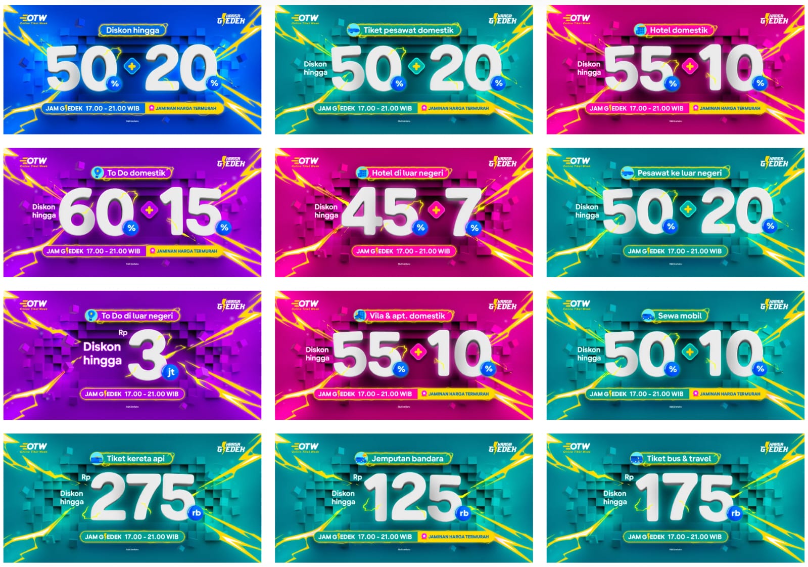 BANDUNG, – Program diskon sensasional ke berbagai destinasi sensasional dari tiket.com, OTW (Online Tiket Week) tengah berlangsung hingga 10 Maret 2023. Diskon paling ditunggu karena Harga Gledek pada jam 17:00-21:00 WIB memberikan diskon hingga 50% + ekstra 20%. OTW jadi incaran masyarakat Indonesia untuk merealisasikan rencana liburan ke berbagai destinasi impian. Sobat Tiket masih bisa pantau terus platform tiket.com untuk nyamber best deals yang ramah kantong untuk berbagai produk kebutuhan perjalanan dan berwisata.