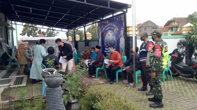 CILEUNYI – Personil Bhabinkamtibmas Desa Cileunyi Kulon Polsek Cileunyi Polresta Bandung Aiptu S.I Mardiana bersama dengan Bhabinsa dari Koramil 2413 Cileunyi melakukan pemantauan pelaksanaan penyuntikkan vaksin Covid-19 tahap 1 dan 2 bagi yang sudah melaksanakan ataupun yang belum melaksanakan dengan sasaran kepada para Tenaga Pendidik / guru dan bagi yang akan menunaikan ibadah haji yang bertempat di Puskesmas Cileunyi Rt.05/13 Desa Cileunyi Kulon Kecamatan Cileunyi Kabupaten Bandung. Selasa (06/04/2021)