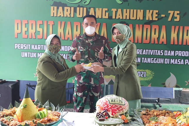 Kabupaten Garut – Dalam rangka memperingati hari jadi Persit Kartika Chandra Kirana (KCK) Tahun 2021, Persit cabang XXll Kodim 0611 Korcab Rem 062 PD lll/Siliwangi mengikuti kegiatan syukuran secara virtual dengan mengambil tempat di Aula Babinsa Kodim 0611/Grt, Selasa (6/4).