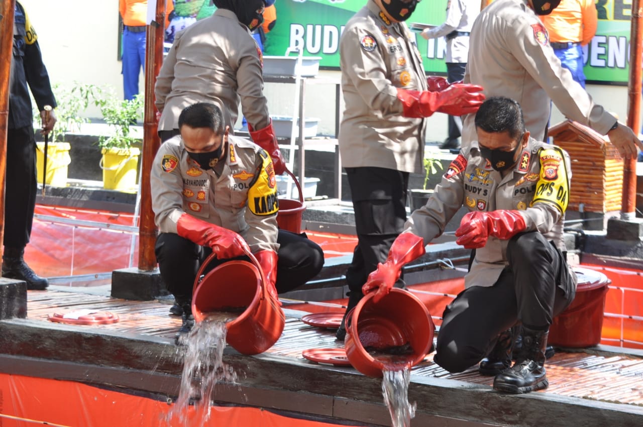 Kapolda Jabar, Irjen Pol Drs Rudi Sufahriadi, mengapresiasi program ketahanan pangan jajaran Polresta Cirebon. Apresiasi itu disampaikan Rudi saat meninjau ketahanan pangan jajaran Polresta Cirebon di lapangan tembak Asrama Polisi (Aspol) Kaliwadas, Kecamatan Sumber, Kabupaten Cirebon, Minggu (6/9/2020).