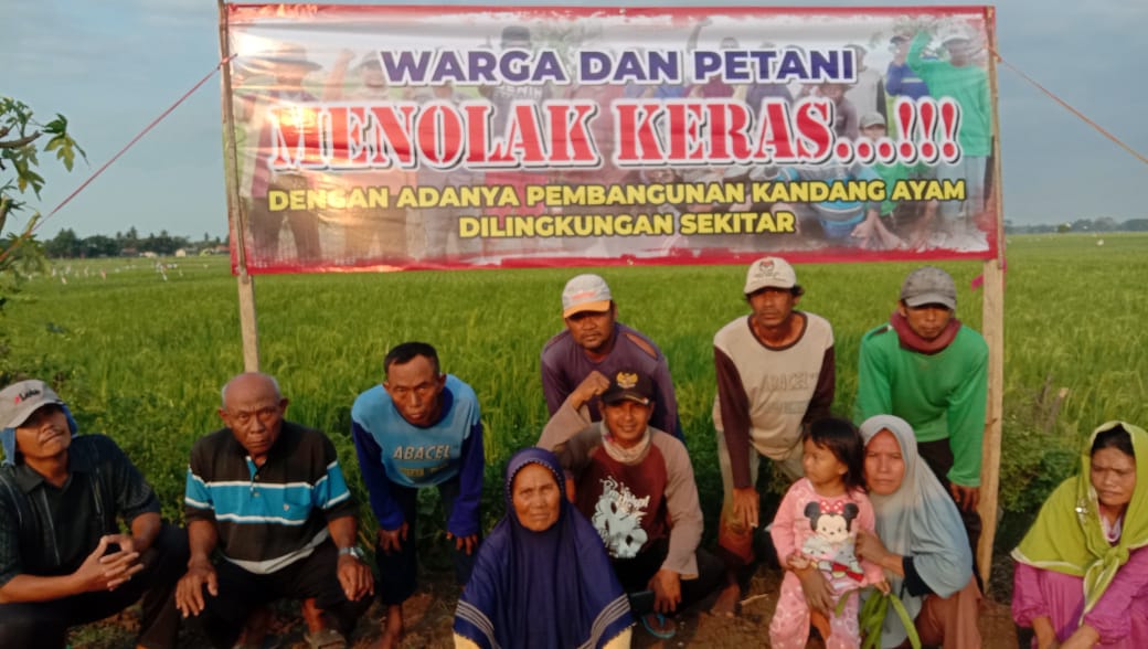 Penolakan rencana pembangunan kandang ayam dilakukan oleh warga dengan membentangkan spanduk di titik lokasi akan dibangunnya kandang ayam tersebut. Warga juga telah membuat surat pernyataan yang di kuatkan oleh tanda tangan warga dan petani.