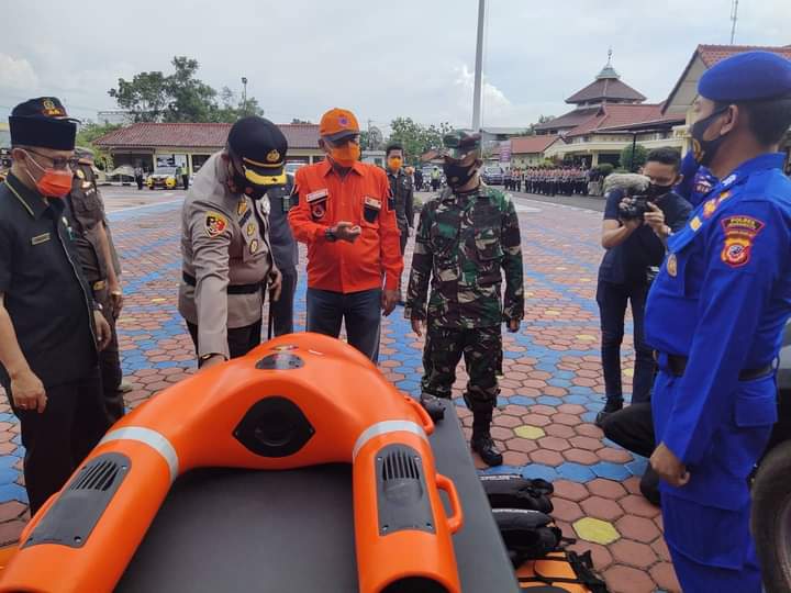Dalam apel siaga tersebut dilakukan pemeriksaan terhadap personil yang hadir dan juga kesiapan alat-alat untuk siaga bencana. ( Nandang/onediginews
