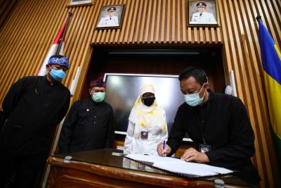 Secara simbolis, Wali Kota Bandung, Oded M Danial menerima bantuan sekaligus menandatangani kerja sama dalam rangka penanganan Covid-19 bersama Partnership For Healthy Cities, di Balai Kota Bandung, Kamis (7/1/2020).