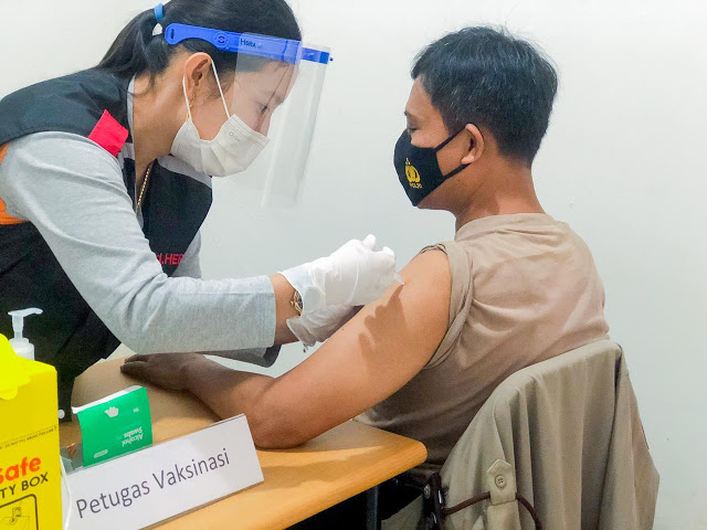 Kapolresta Bandung Kombes Pol. Hendra Kurniawan.S.I.K.,M.M melalui Kapolsek Dayeuhkolot Kompol Tedi Rusman, SE., mengatakan bahwa hari ini merupakan hari kedua para Personil Polsek Dayeuhkolot melaksanakan Vaksinasi Covid-19 tahap 1 yang mana di jadwalkan secara bergilir selama 3 hari. Sabtu (06/03/2021)