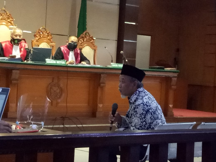 “Almarhum datang ke rumah, sambil memeluk saya almarhum menangis dan berkata punya dosa kepada Pak Lia dan Riantono. Almarhum mengaku telah dholim kepada beliau-beliau ini,” tutur Kadar, sambil menengok ke arah Riantono dan Lia Noer Hambali yang duduk di kursi belakang ruang sidang.
