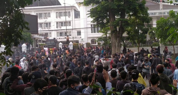 BANDUNG, MBInews.id – Massa pendemo yang berasal dari elemen mahasiswa sejumlah universitas di Bandung, serta pemuda yang menggunakan atribut hitam, ricuh didepan DPRD Jabar.