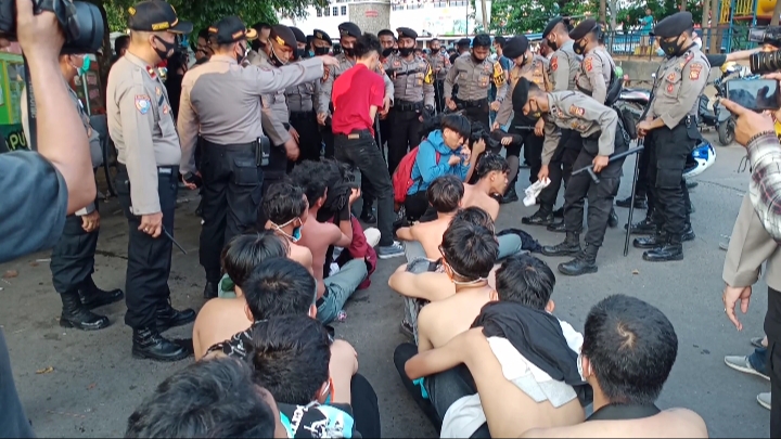 Pantauan dilapangan,.kelompok pemuda dengan ciri.khas.memakai pakaian hitam tersebut ditangkap polisi disejumlah titik dan sempat terjadi kejar-kejaran dengam.petugas. Mereka yang dicurigai kelompok.”Anarko” langsung.diamankam.