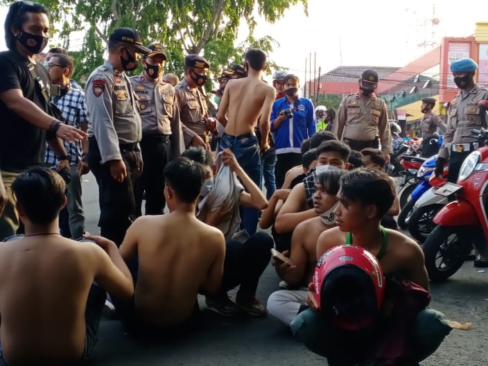 Puluhan orang yang diduga kelompok perusuh ini dikumpulkan dipinggir jalan arah Stadion Singaperbangsa Karawang. Mereka diminta duduk berbaris dan menjaga jarak, dan selanjutnya dibawa ke Polres Karawang.