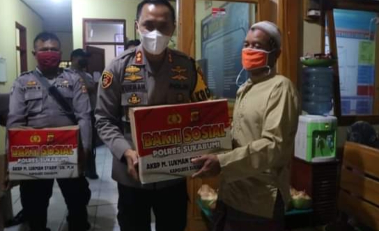 Selain pemnataun langsung juga menggelar kegiatan bakti sosial berupa pembagian sembako kepada warga masyarakat tidak mampu dilaksanakan di Mapolsek, secara simbolis Kapolres Sukabumi menyerahkan sembako kepada perwakilan warga masyarakat dan nantinya bantuan sembako akan diantar langsung oleh anggota Polsek ke masing – masing rumah warga.(Nandang/onediginews)