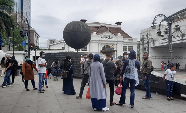 Meski mayoritas pengunjung terpantau mengenakan masker, namun masih banyak pengunjung yang membawa anak-anak tanpa masker dan atau face shield. Pemandangan serupa juga terjadi di ruas Jalan Braga yang kerap dipadati pengunjung untuk berwisata kuliner dan berfoto.